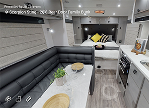 Take a 3D tour of one of our many caravan layouts, these tours are designed to be not only an exciting way to see the van but to be informative as well. Take a tour of one of our luxurious caravans and see the JB difference for yourself…