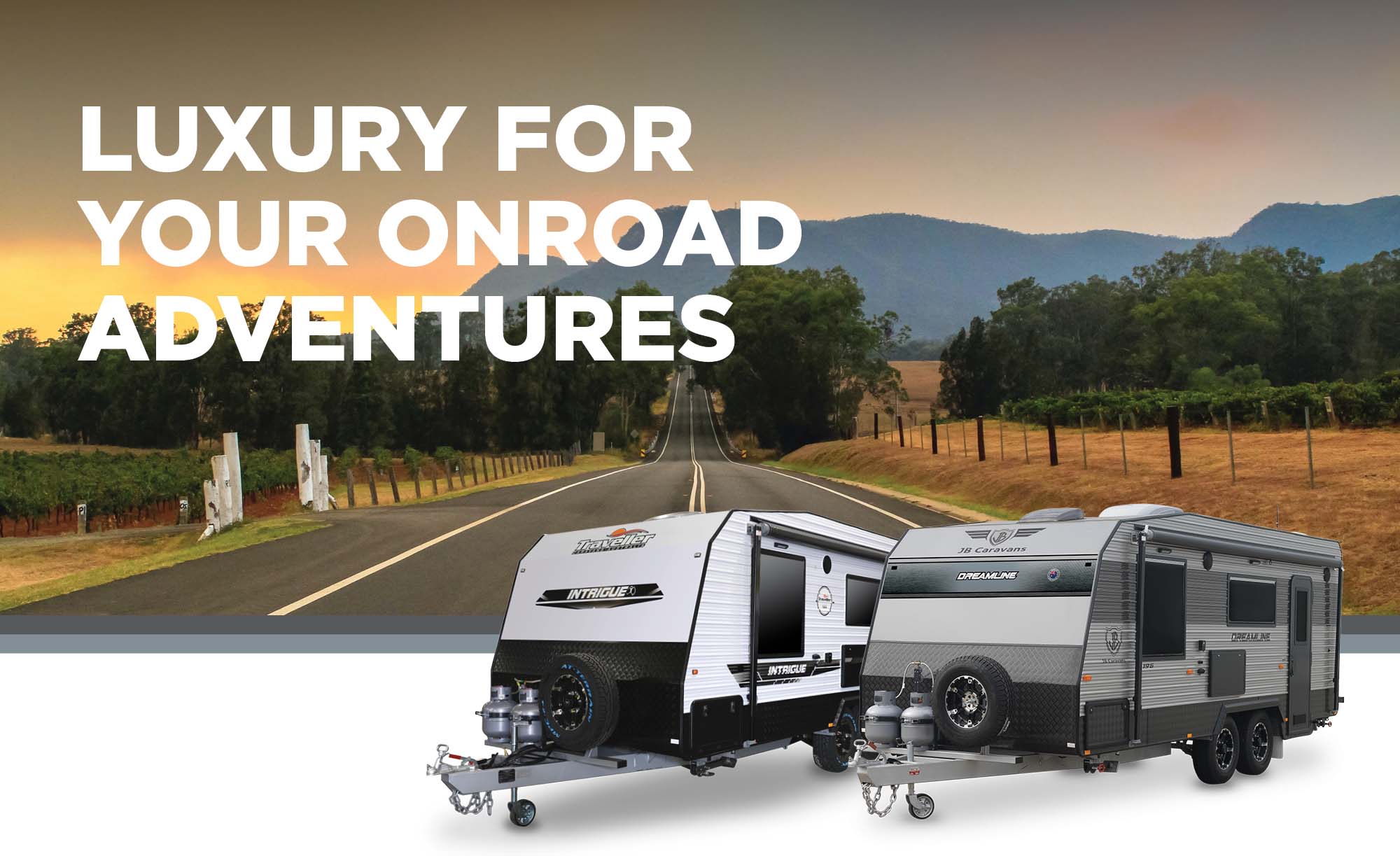 Australia has an extensive network off roads and highways that link up with our beautiful towns and beaches, why not take a JB Caravans on road model with you on your Journey? Explore the windy great ocean road, inland roads and mountain passes together, all whilst having an adventure of a lifetime. Choose from the Dreamline or Traveller Range.