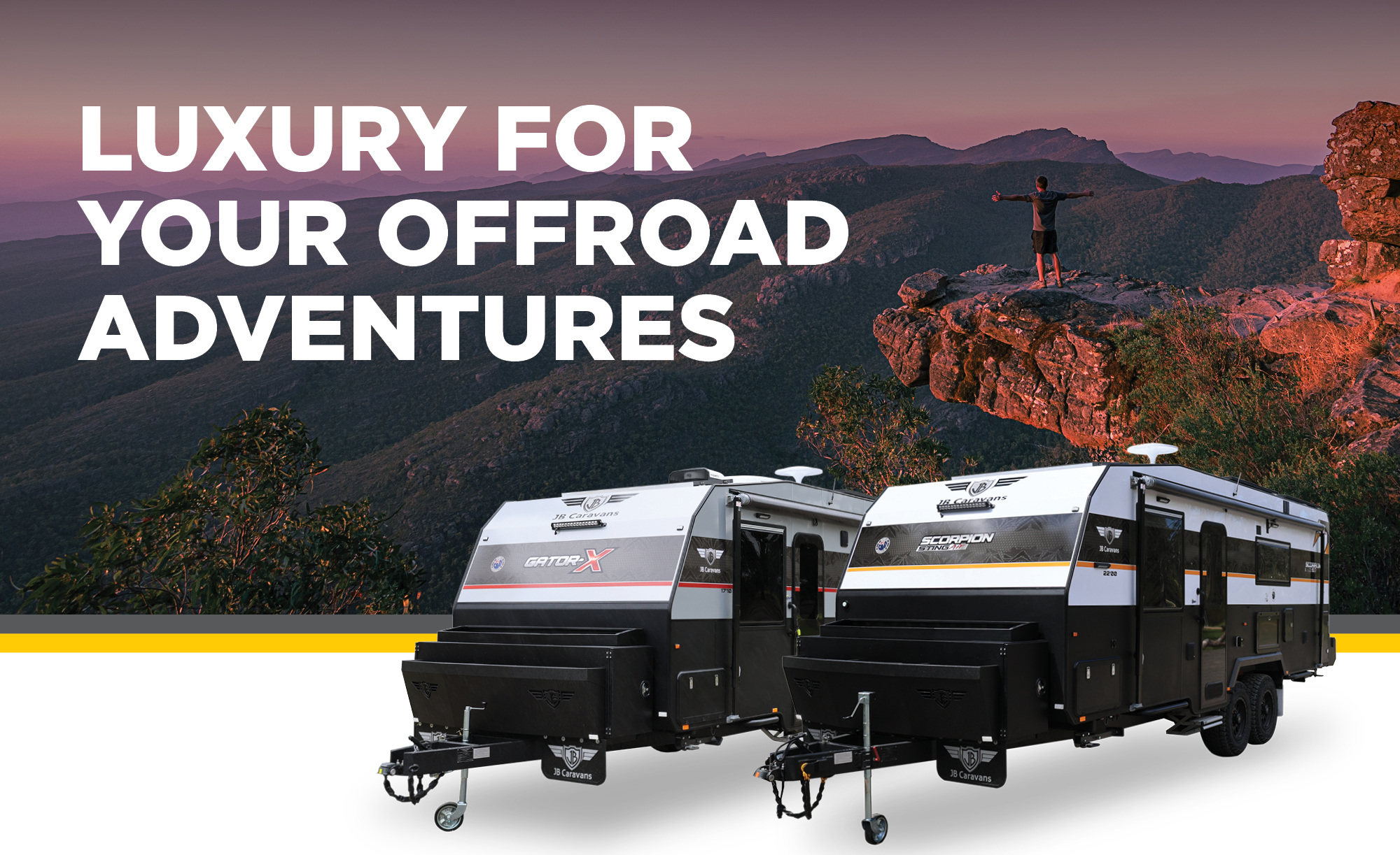 There is no better way to explore the hard to reach places and beautiful landscape of Australia then in an off-road model from JB caravans. Our caravans are designed to get you to where you want to go in comfort and style. Set up camp in the outback, by a lake or wherever your heart desires in an off road caravan from JB.